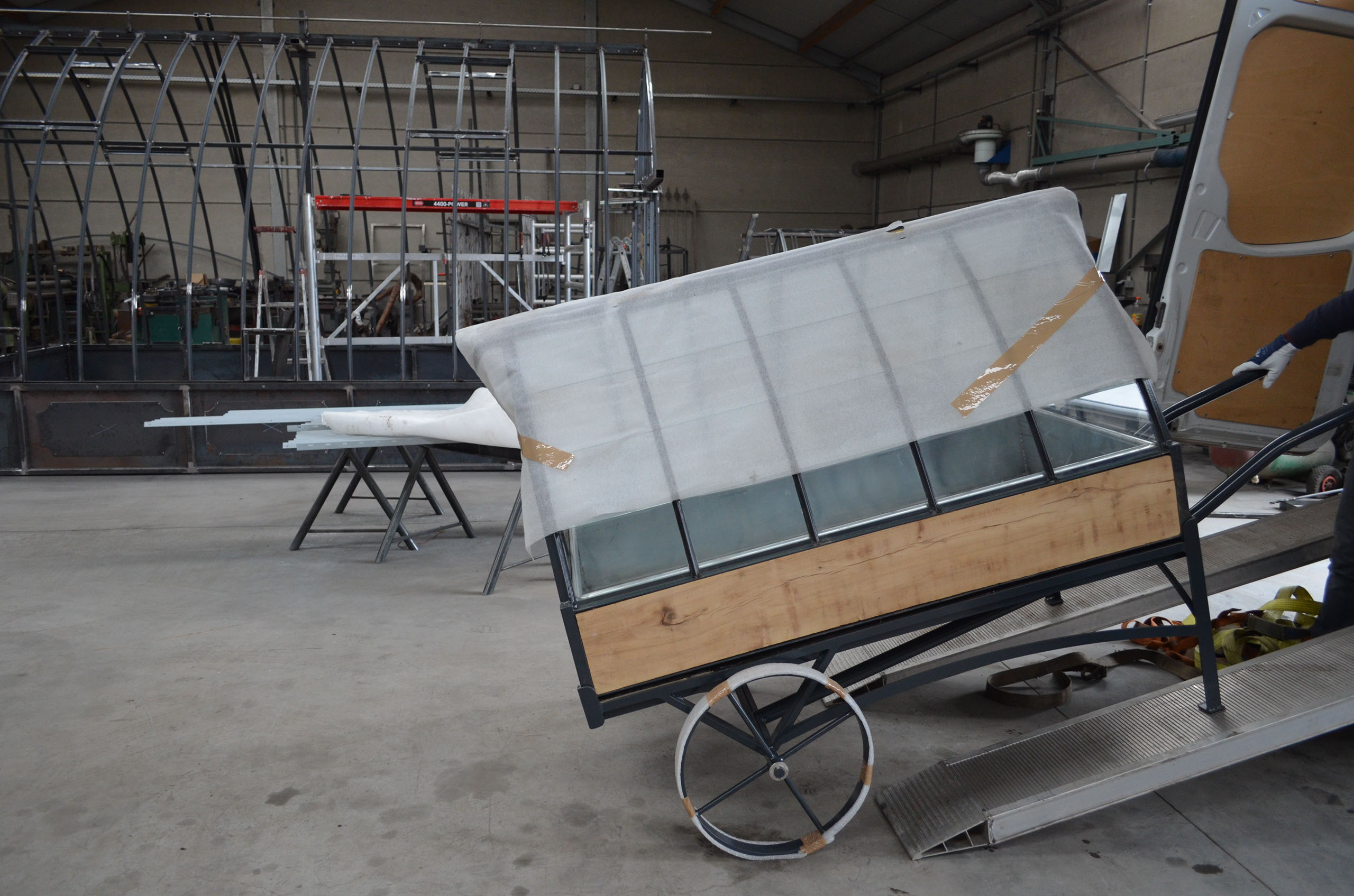 En avril 2012, présentation des 1ères mini-serres en acier lors de la foire de jardin dans le parc d’Enghien; celles-ci suscitent une vive curiosité du public et un réel intérêt.